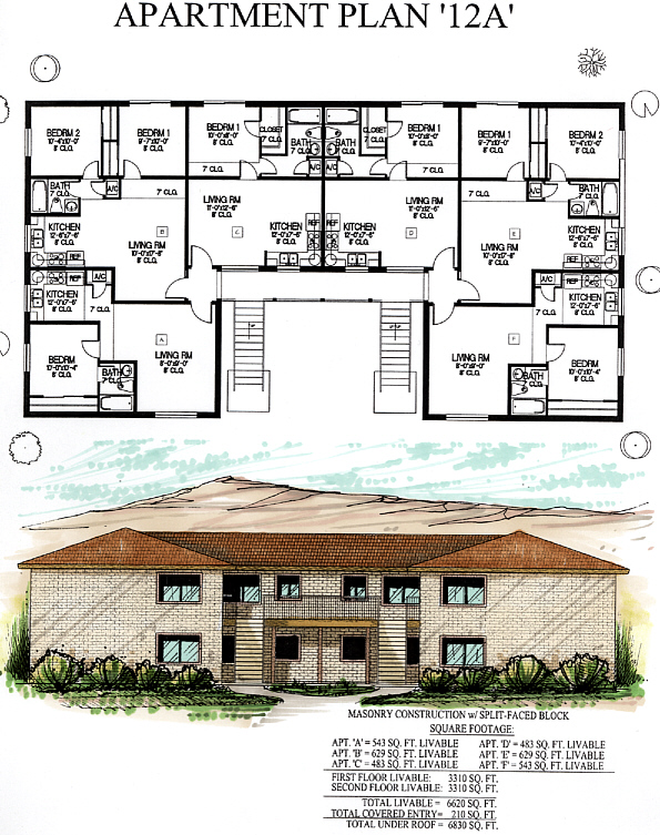 Apartment Plan 12A 6830SQ FT 2 Story $1900.00